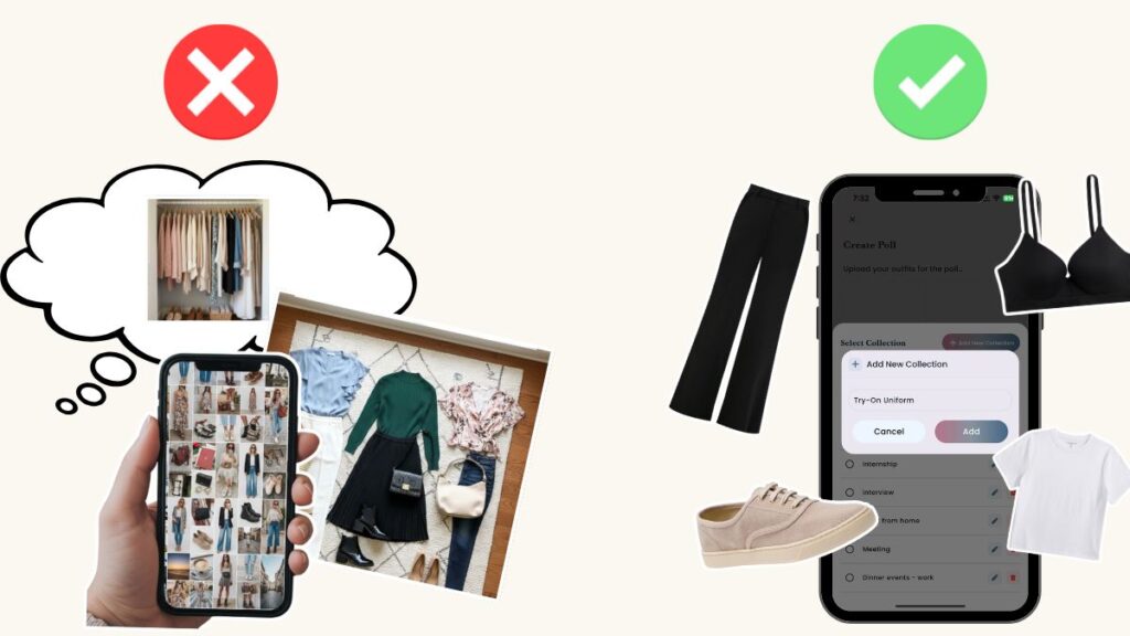 Quick Answer + Do Today TL;DR: A smart shopping outfit is a “try-on uniform” that mirrors what you actually wear, so items have to work with your real-life basics (not store lighting or mannequin styling). Build your shopping day outfit from your most-worn pants, throw-on shoes, correct bra, and baseline top, then use a quick pairing test to decide how to shop for clothes without duplicates or regret. Do this: Wear your most-worn pants + throw-on shoes (errands-level, not “special occasion”). Then: Add your correct everyday bra and your baseline top (the one you repeat most). Next: In the fitting room, test every item with your uniform and ask, “What 3 things at home will I wear this with?” Stop when: You can name 3 real outfits you’ll repeat (or it’s a no). AMC move: Post a 2-photo poll (before/after), then save the winner to a Collection called Try-On Uniform so you don’t forget what works. How does my shopping day outfit stop dressing room delusion and closet clutter? Your shopping outfit is about preventing dressing room delusion—that moment when something looks amazing under store lighting with coordinating pieces nearby (instead of things you own), then you get it home and it matches nothing (and you're dressing like a store mannequin which is boring and other people will show up in the same look). The item wasn't wrong. Your testing environment was. So you grabbed all the pieces around the item. Now you look like a walking brand advertisement. The Try-On Uniform solves this by turning your shopping day outfit into a repeatable formula that represents your actual life. Not your aspirational life. Your real Tuesday morning default. This one shift catches bad purchases before you buy them and eliminates return regret before it starts. Why Most Records of What You Own Fail When You're Shopping Using your phone's Photos app: You're hunting through vacation pics and screenshots to find that one photo of your favorite jacket—no organization, no search function, no pattern recognition. Relying on memory: You forget the four pink sweaters already hanging in your closet and which neutrals you actually reach for versus the ones gathering dust. Layflat outfit-planning apps: You spend 40 minutes arranging theoretical outfits on your bed instead of learning what you actually wear—they don't capture real body feedback or show which combinations you repeat. Adjust My Crown is different because it captures real wear data. When you post side-by-side polls, those outfits auto-save to Collections. Over time, you build a searchable archive of your true style defaults, on your own body which shows your proportions, which is exactly the data you need when shopping for clothes. How to Use AMC While Shopping Before you go: Collections show you what you never wear, which prevents repeat mistakes. If you own five pairs of black pants but only one appears in Collections, stop buying black pants. You can also run preshopping polls on items you're considering—post screenshots and let your community vote before you drive to the mall. During your trip: Scroll through Collections while standing in the fitting room. Search for "pink" or "cold weather" if you tagged your polls. Trying on another pink sweater? Check how many you already own and actually wore. Maybe that justifies it, or maybe you should buy the olive green option that matches the scarf you wear constantly. Take fitting room photos and post real-time polls if you want opinions. The side-by-side format forces clarity: "New skirt with my daily sneakers vs. new skirt with boots I never wear." The Five Try-On Uniform Rules 1. Wear your most-worn pants—not your favorite, the ones you grab three times a week. Check Collections to confirm. 2. Wear your throw-on shoes—the ones for errands and pickup, not the heels that never appear in your saved outfits. 3. Wear the correct bra—if the new item requires a strapless bra you don't own, that's a $60 add-on cost. 4. Wear your baseline top—the white tee, fitted tank, blue button down, black sweater that appears in Collections most often. 5. Check Collections in the store—before you buy, ask: Do I already own this? Do I wear items like this? What will I pair this with at home? What to Do Tonight Open Adjust My Crown and scroll through Collections. Write down the three items that repeat most often. That's your Try-On Uniform. If you don't have enough data yet, start posting daily polls this week—even for outfits you're sure about. You're building evidence that prevents regret purchases later. Save it in a Collection called "Try-on Uniform". Next time you go shopping, wear that uniform and open Collections in the fitting room. If something looks good with your real defaults and doesn't duplicate what you already wear, and you love it, it's a heck yes. If it only works with items you never reach for, it's a no. The dressing room mirror can lie, but your Collections data doesn't. What should I wear shopping if I’m buying tops? Wear your most-worn pants, your everyday bra, and your default shoes so tops are forced to work with your real proportions and daily styling. How do I avoid “dressing room delusion” under store lighting? Stop styling items with the store’s perfect add-ons. Use your try-on uniform and only say yes if it works with your real-life basics in a fast 3-outfit test. What’s the fastest rule to stop closet duplicates while shopping? Check what you already repeat (your saved outfits/Collections), then don’t buy another version unless it clearly replaces a worn-out workhorse or fills a proven gap. Should I take fitting room photos when I shop? Yes, if you use them for decision-making (not perfection). Take two quick comparison photos and either run a poll or compare “with my daily shoes” vs. “with fantasy shoes.” How do I know when something is a “heck yes”? If it works with your uniform, you can name three repeatable outfits, and it doesn’t du