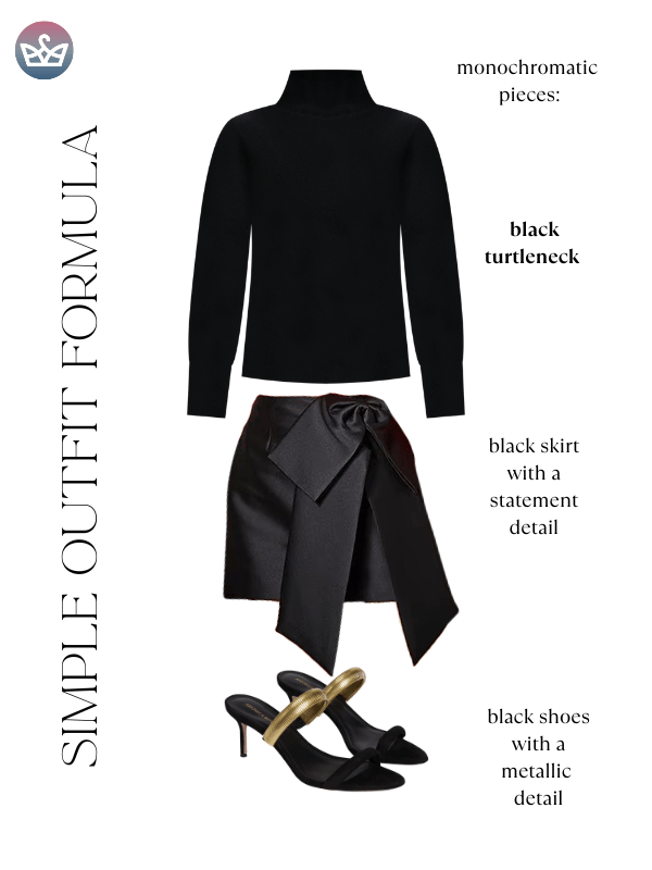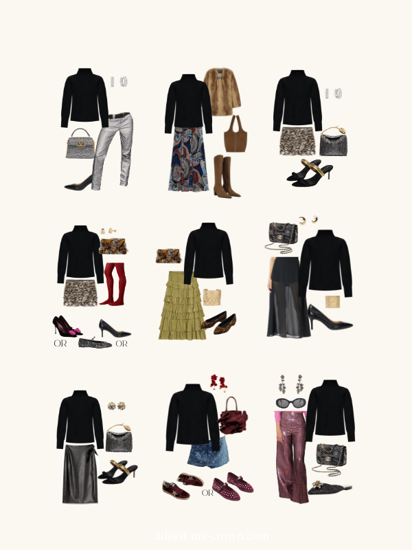 The black turtleneck formula works because it's not actually a formula. It's a starting point that lets your personality do the talking. The metallic jeans, the sequin skirt, the bow skirt, the leather panels, they're all just different ways of saying the same thing: I showed up, I'm comfortable, and I look good doing it.