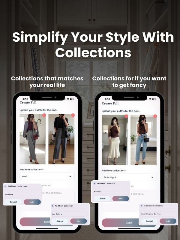 Start small: 10 options per Collection is plenty. Add photos as you wear them (not as a giant “upload your whole closet” project, because no one has time for that). Every time you put on something that works, save it to the right Collection. Now you’re building a personal lookbook by living your life, not by doing homework.