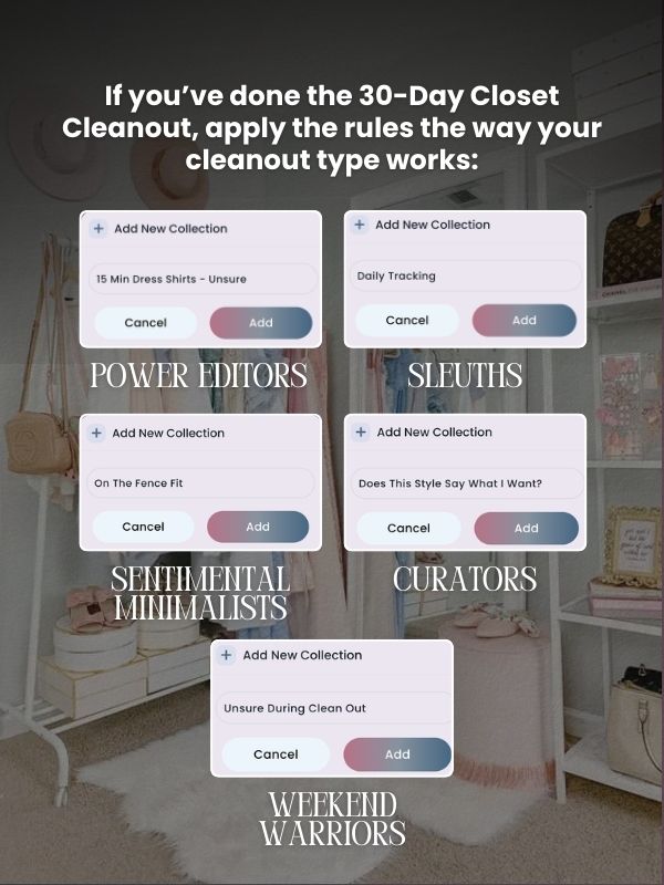If you’ve done the 30 day Closet Cleanout, map rules to your cleanout type.