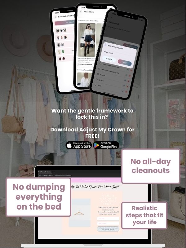 Download Adjust My Crown, then join my 30-day cleanout series. It’s a 30 day set of emails (not every single day… think of it as a gentle guide…).