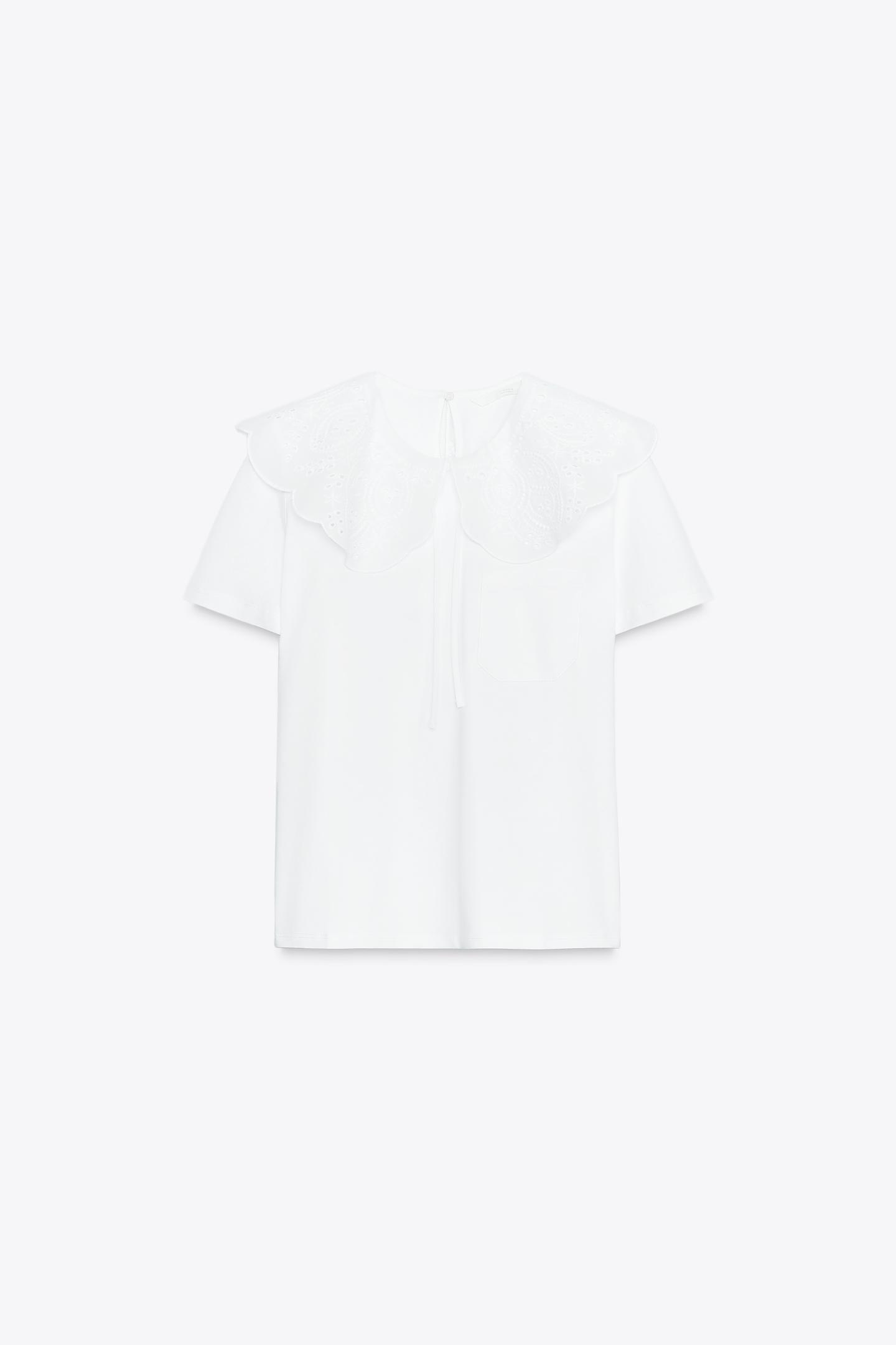 EMBROIDERED PETER PAN COLLAR T-SHIRT