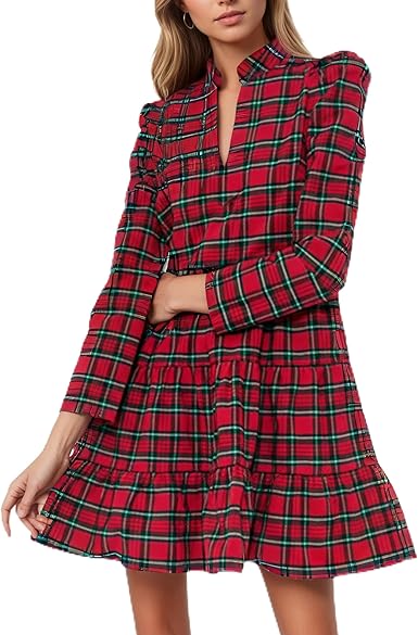 / Long Sleeve V Neck Loose Shirt Dress