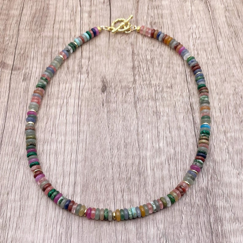 Rainbow Gemstone Beaded Necklace: Gold Toggle Clasp, Custom Length