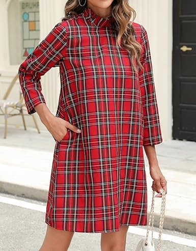 / Ruffle Mock Neck Long Sleeve Dress Swing Elegant Shift Dress