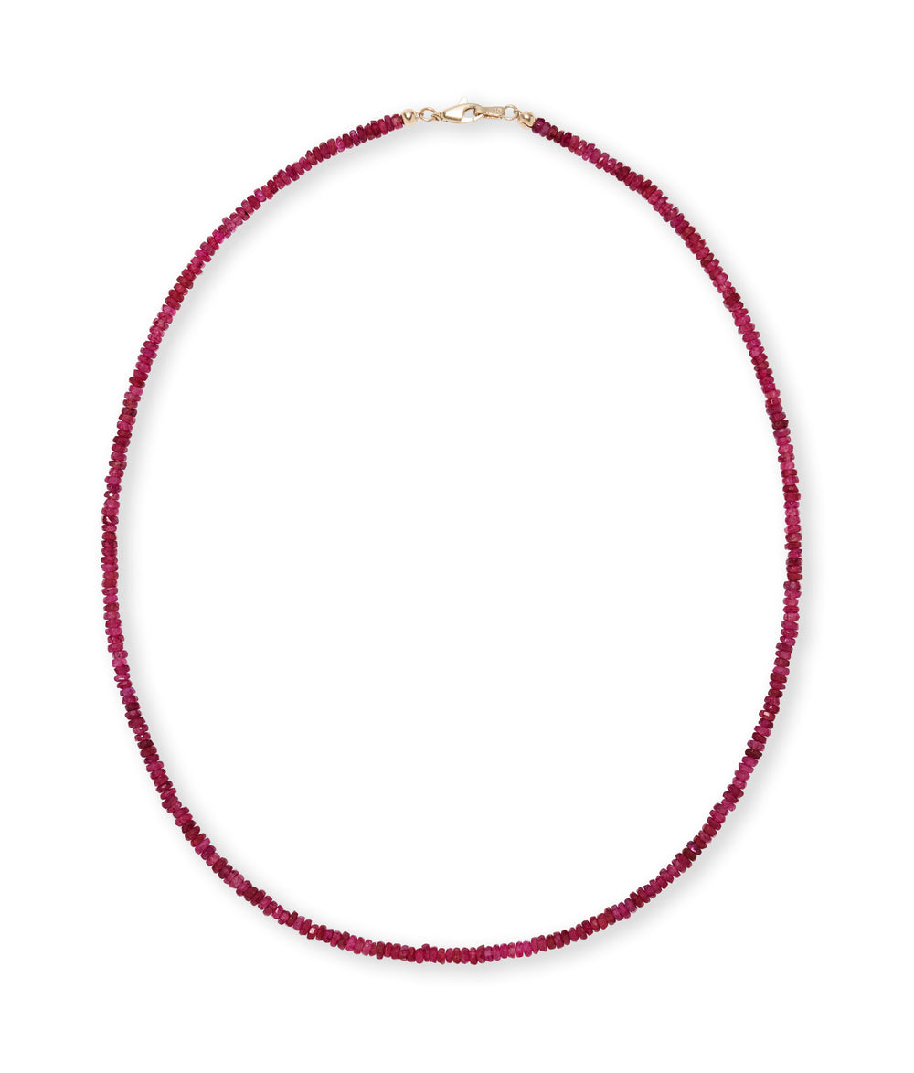 / Tiny Beaded 14k Gold Necklace in Ruby – July