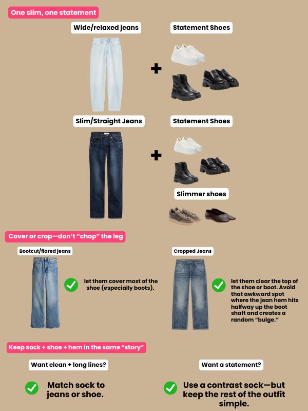 How do I know if a shoe “works” with my jeans?