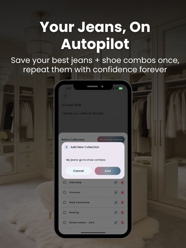 You probably have a stack of jeans… and still stare at your shoes thinking, “Nothing looks right.” Instead of buying another pair, we’re going to turn the jeans and shoes you already own into a tiny library of go-to outfits. The first step: pick one pair of jeans you actually wear and three pairs of shoes you reach for most, then we’ll snap quick photos and save them in a “My jeans go to shoe combos” collection inside Adjust My Crown, your free stylist-in-your-pocket app.