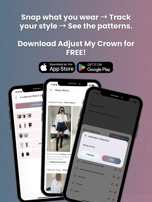 Download Adjust My Crown, log what you're wearing right now (yes, literally right now).