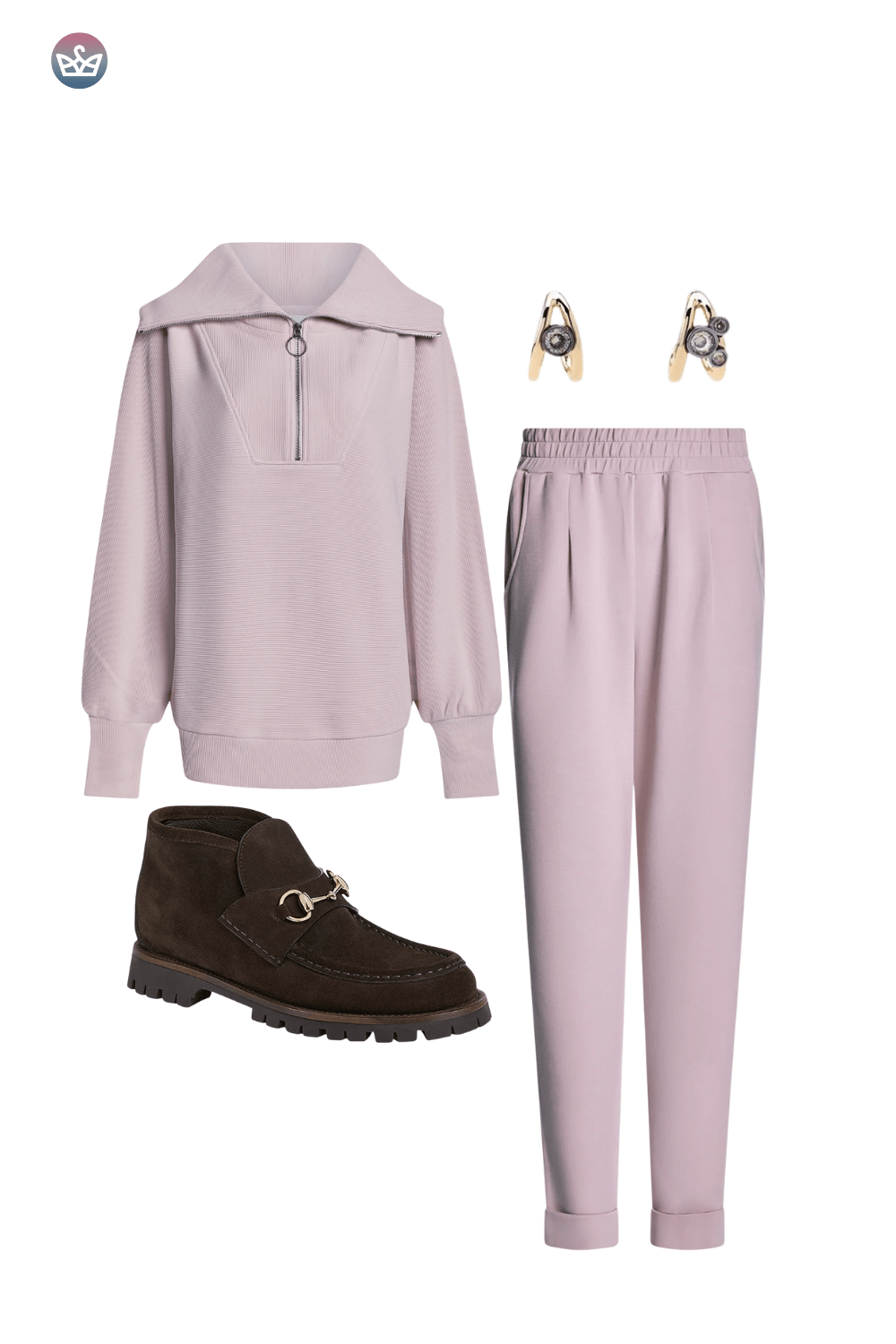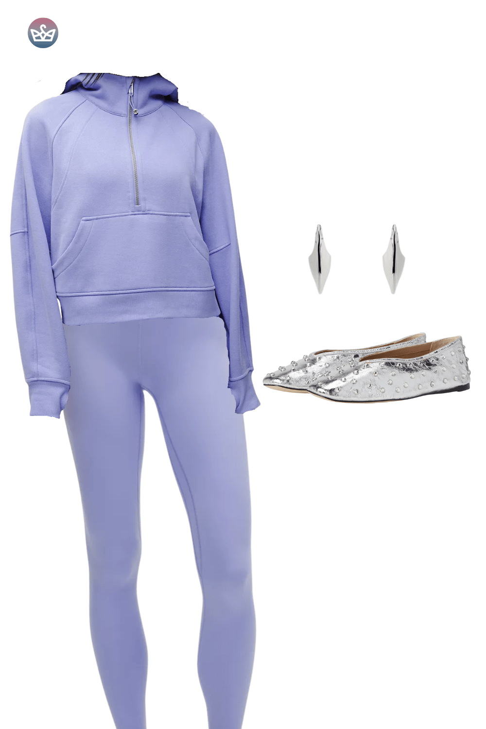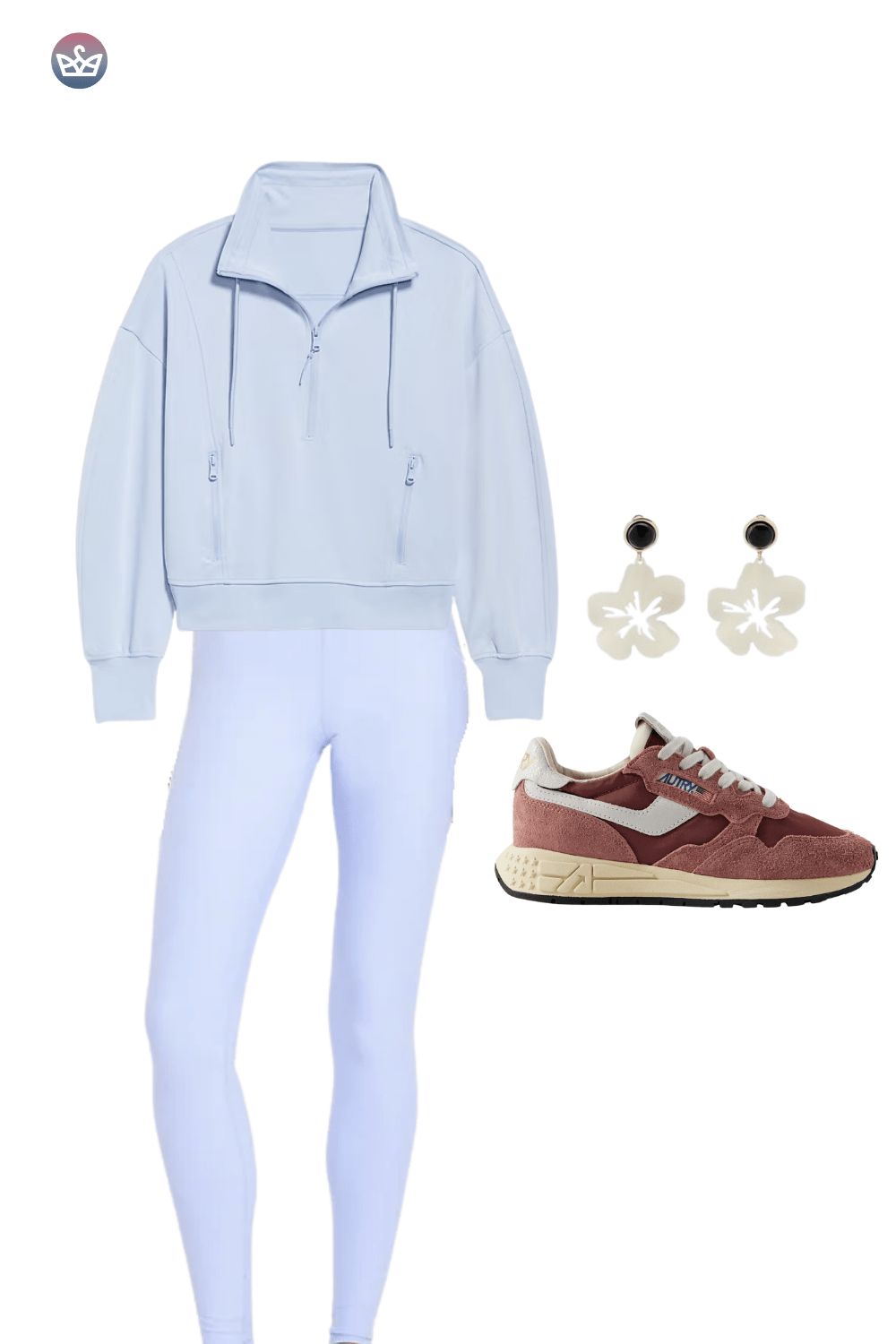 Quarter-zip + leggings is peak Study outfit comfy; swap in a wide-leg sweatpant for a trend hit that still moves. Metallic flats or luxe loafers dress it up; classic sneakers keep it athletic without the squeak.
